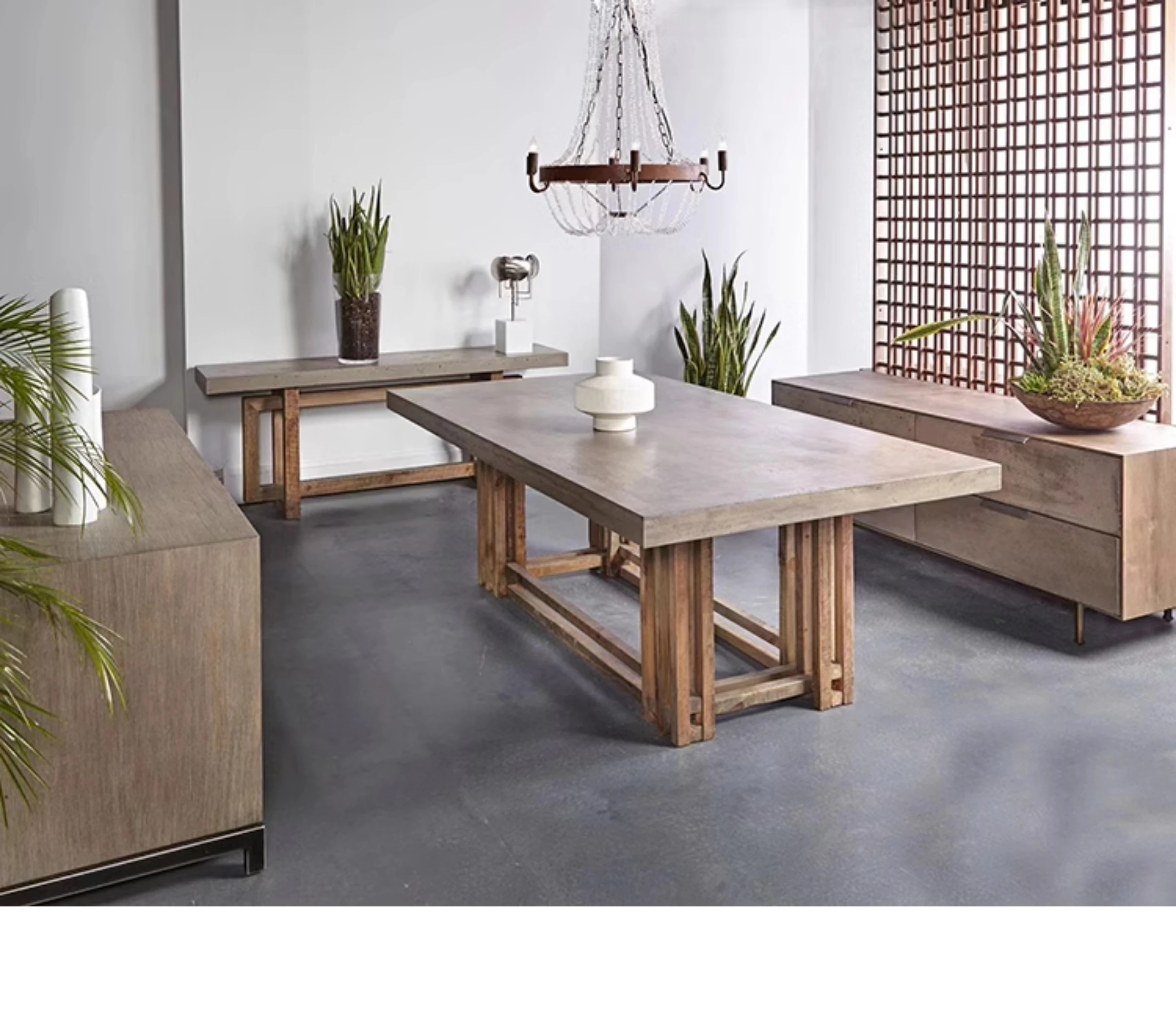 朴宿里 オーク古材の侘び寂びデザイン 書斎テーブル レトロな茶卓 デザイナーズ水泥テーブル ヴィラやレストランにぴったりのロングテーブル