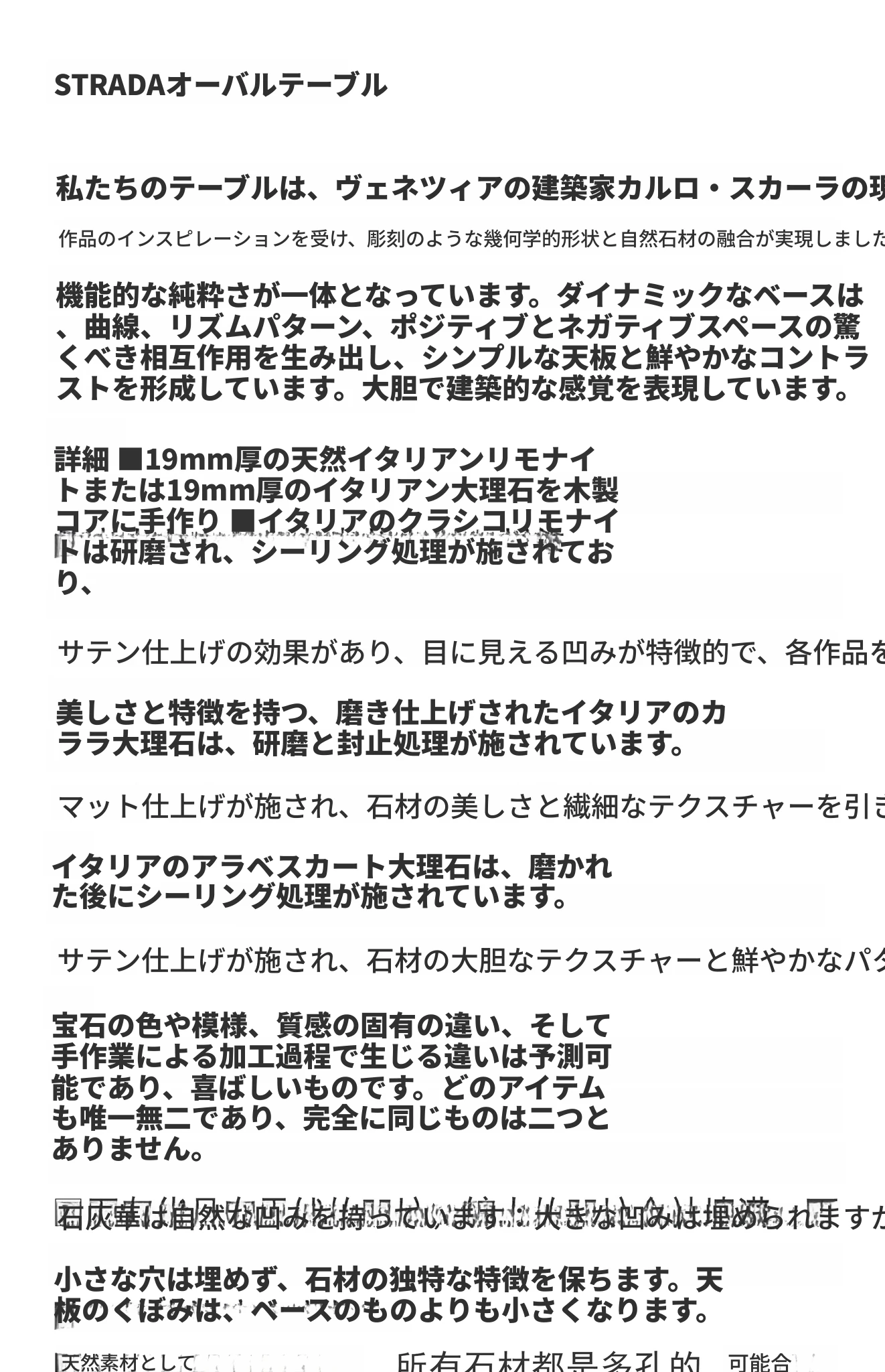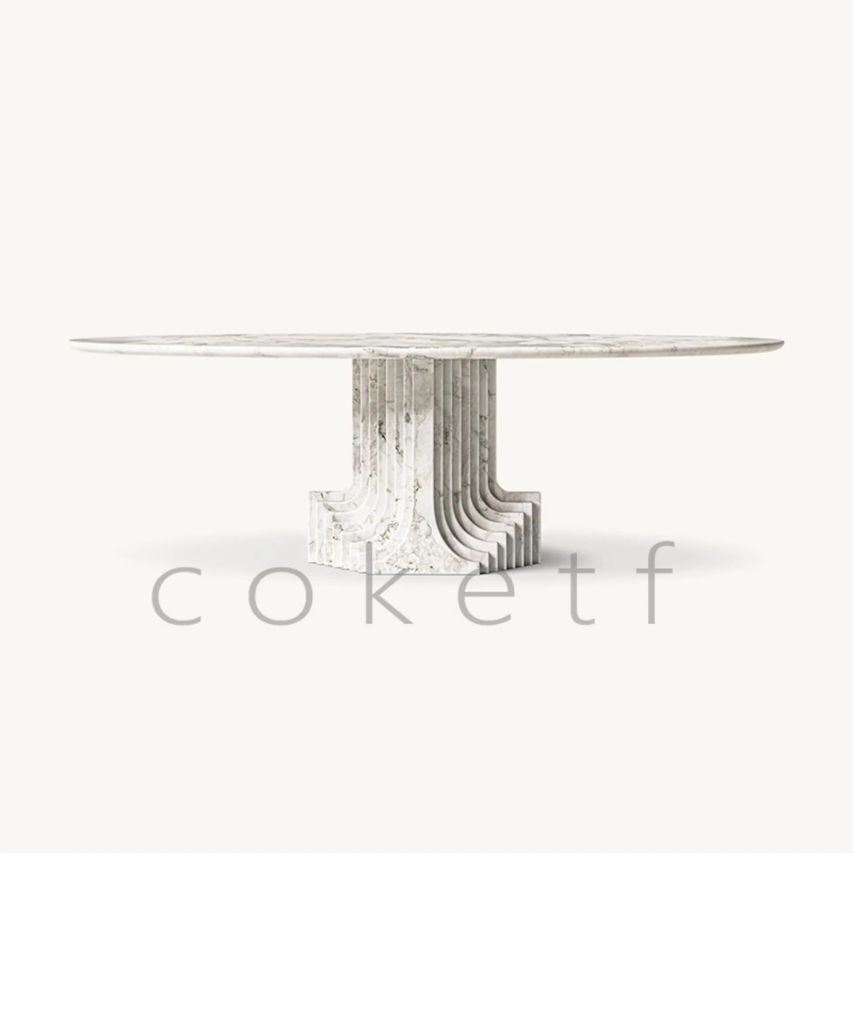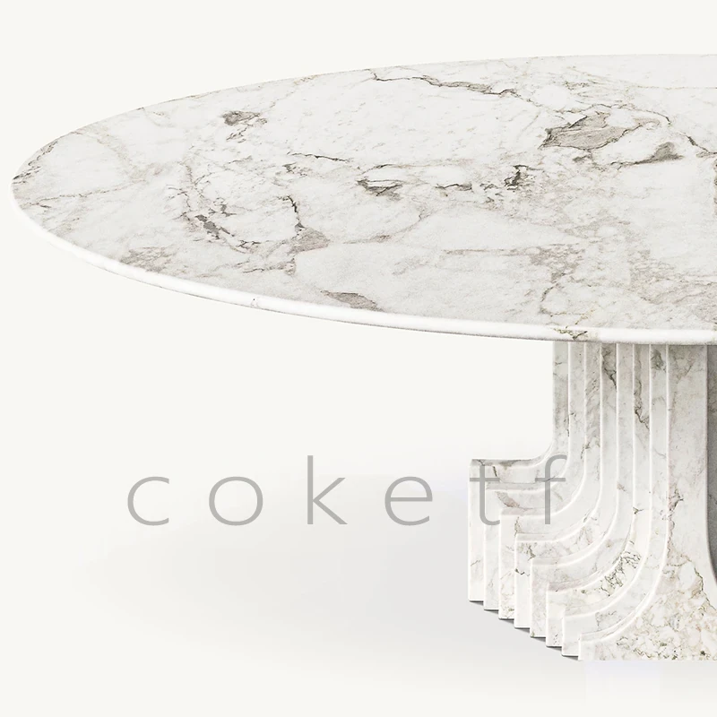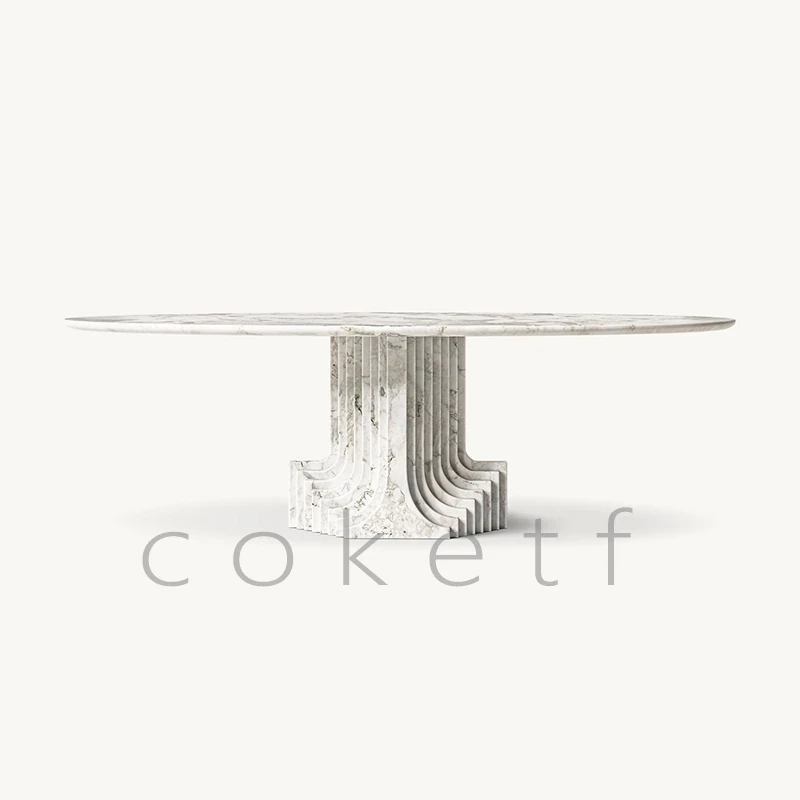 STRADA高級感あふれる大理石エレガントテーブル - イタリア製の天然大花白オーバルデザイン。洗練された雰囲気で、あなたの空間を格上げします!