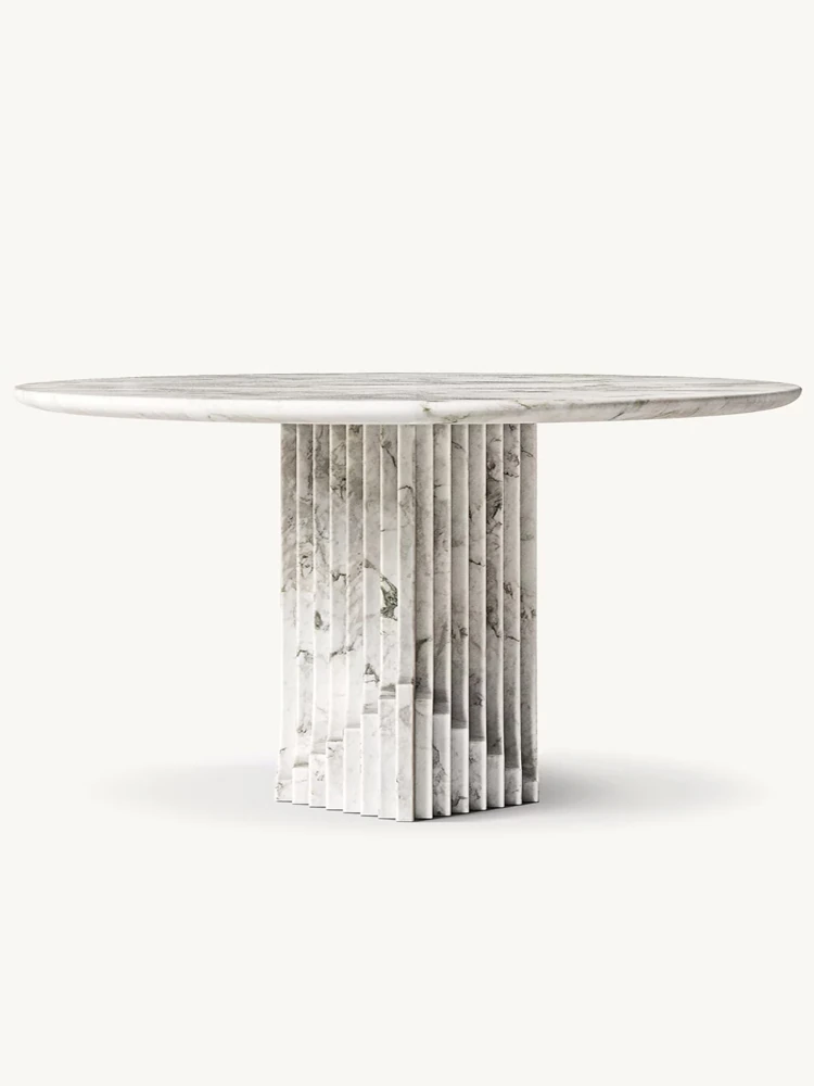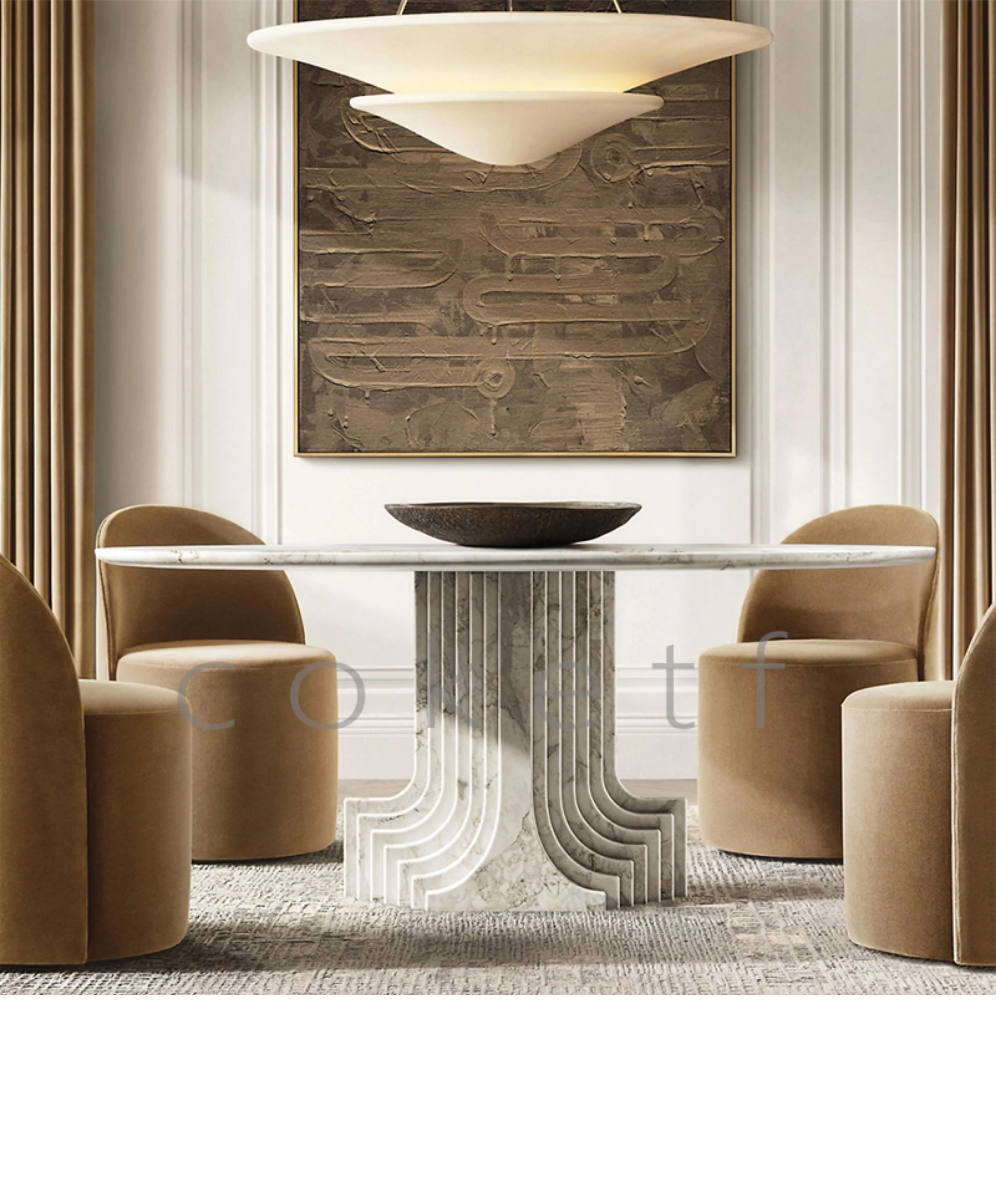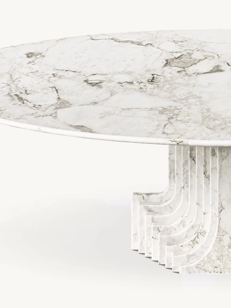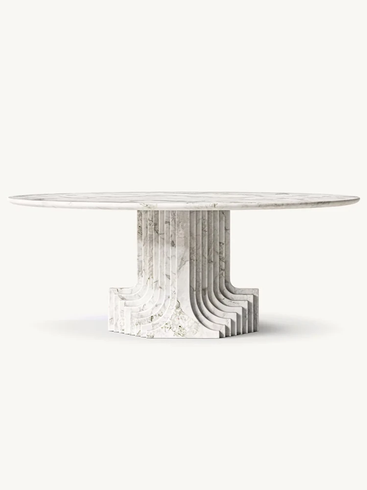 STRADA高級感あふれる大理石エレガントテーブル - イタリア製の天然大花白オーバルデザイン。洗練された雰囲気で、あなたの空間を格上げします!