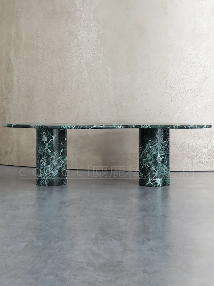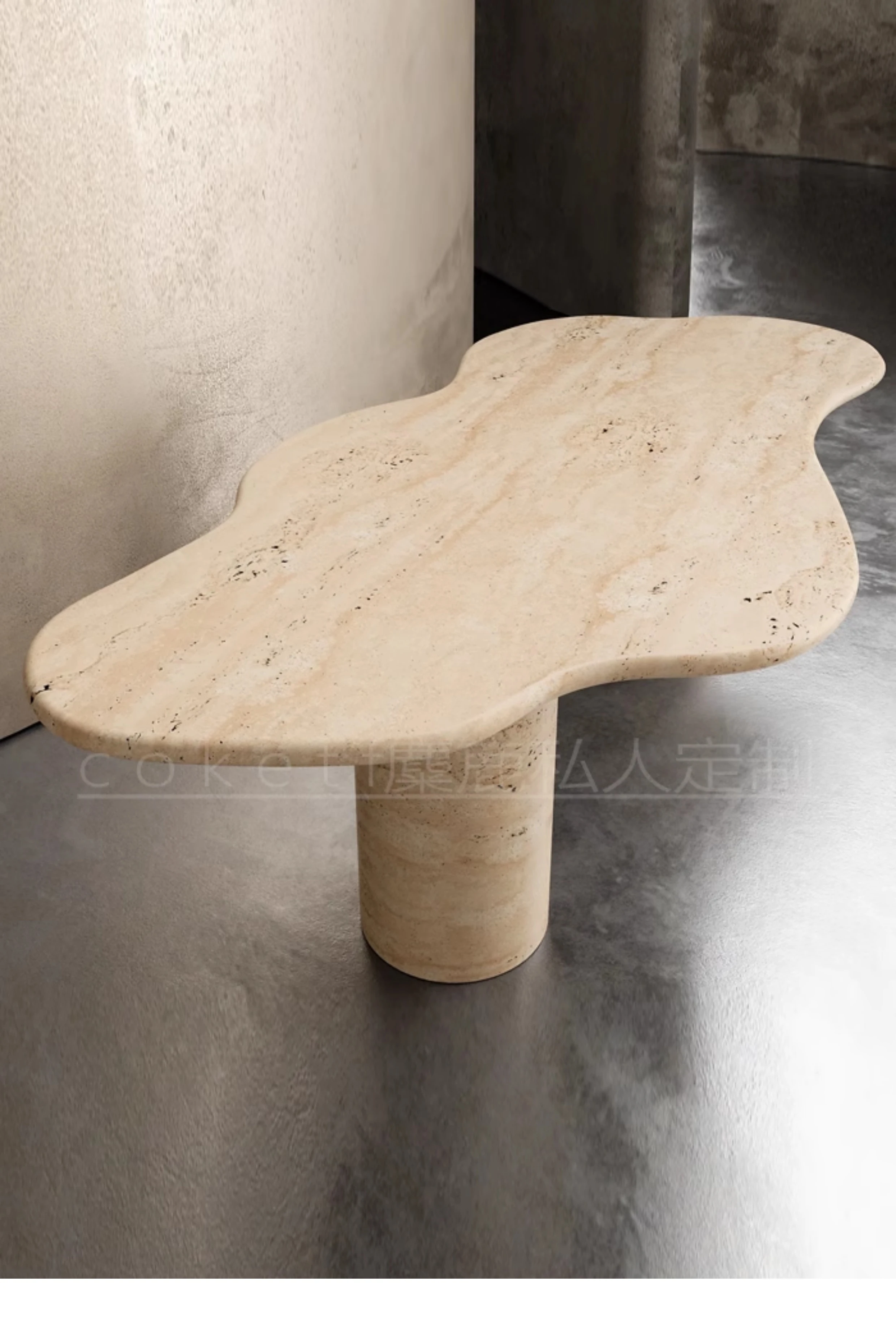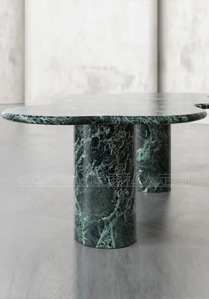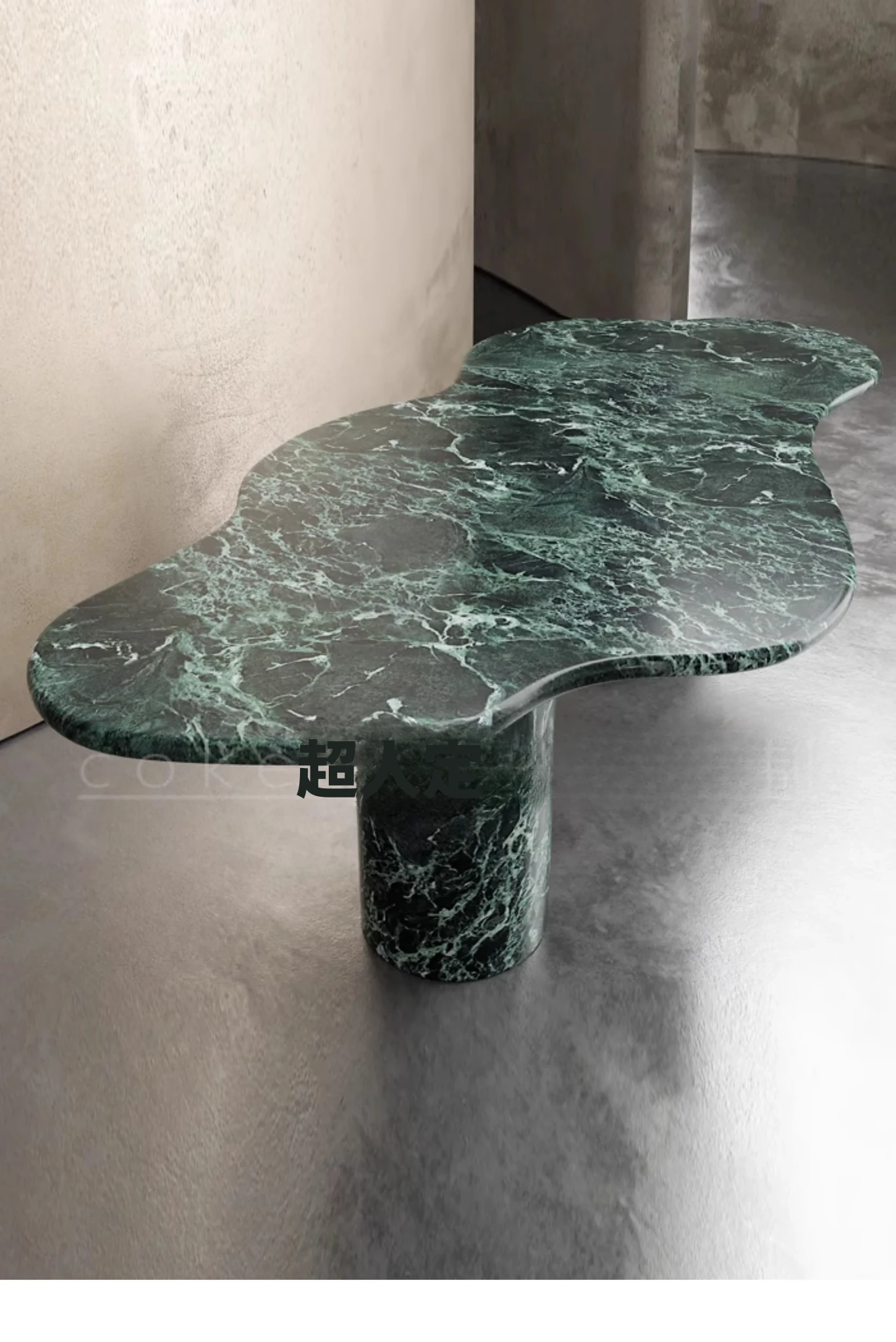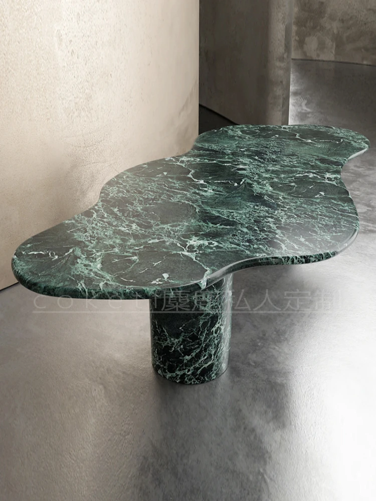 侘寂スタイルの創造的アート、天然大理石のユニークな形状のダイニングテーブル。デザイナーズの高級感あふれる別荘向けの大テーブルで、洗練された空間を演出します。