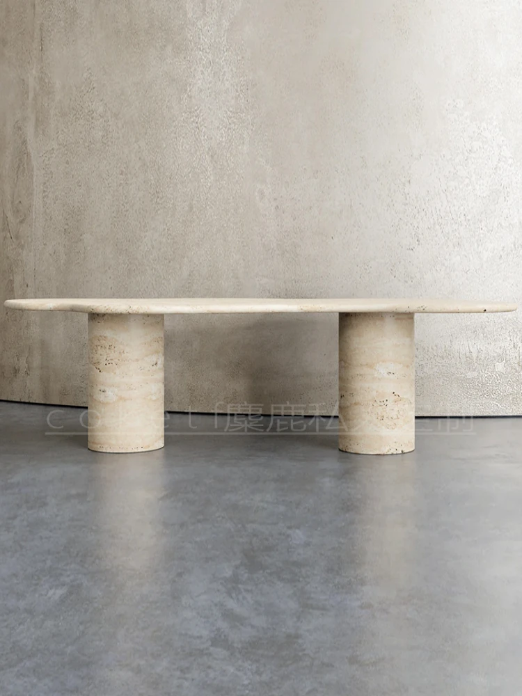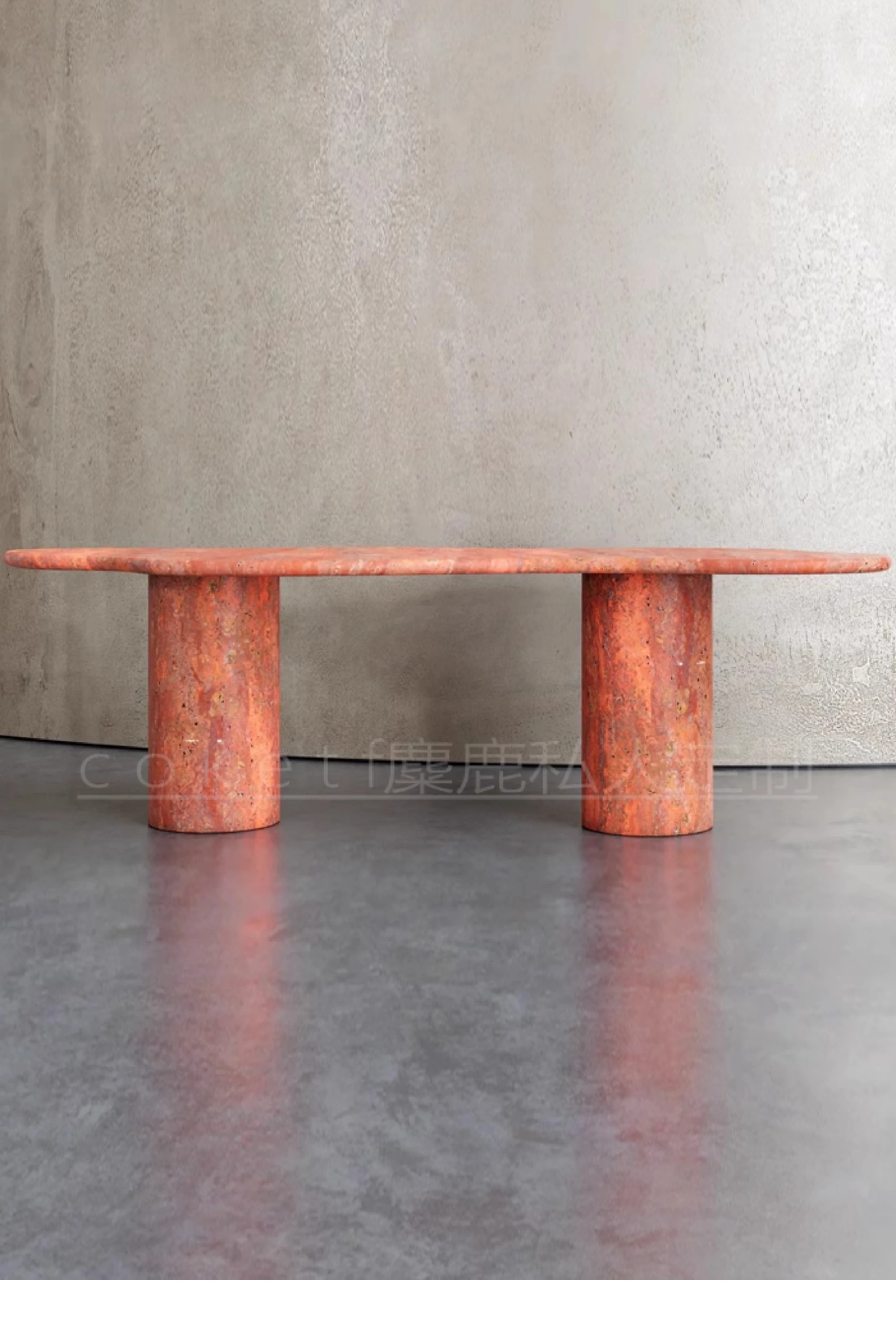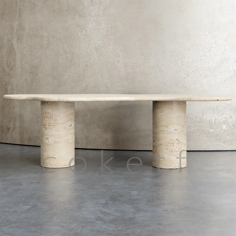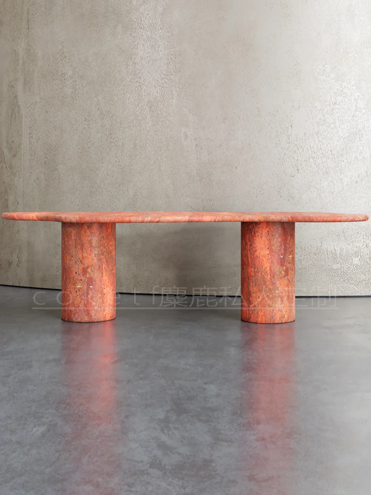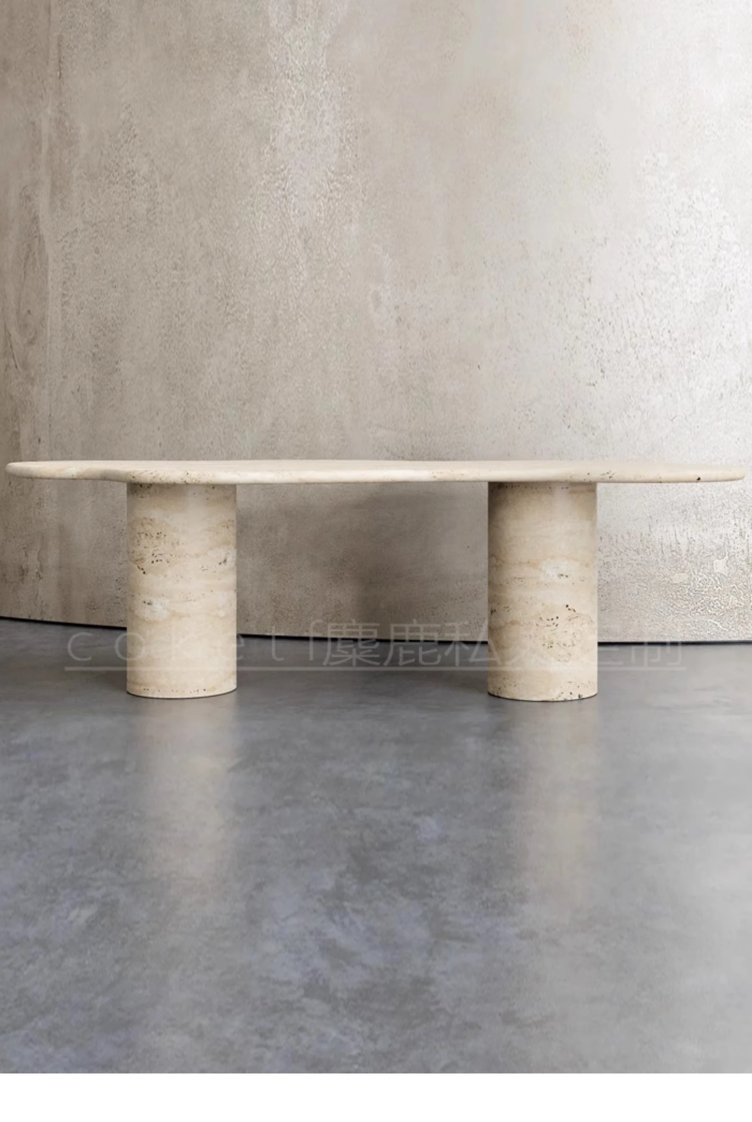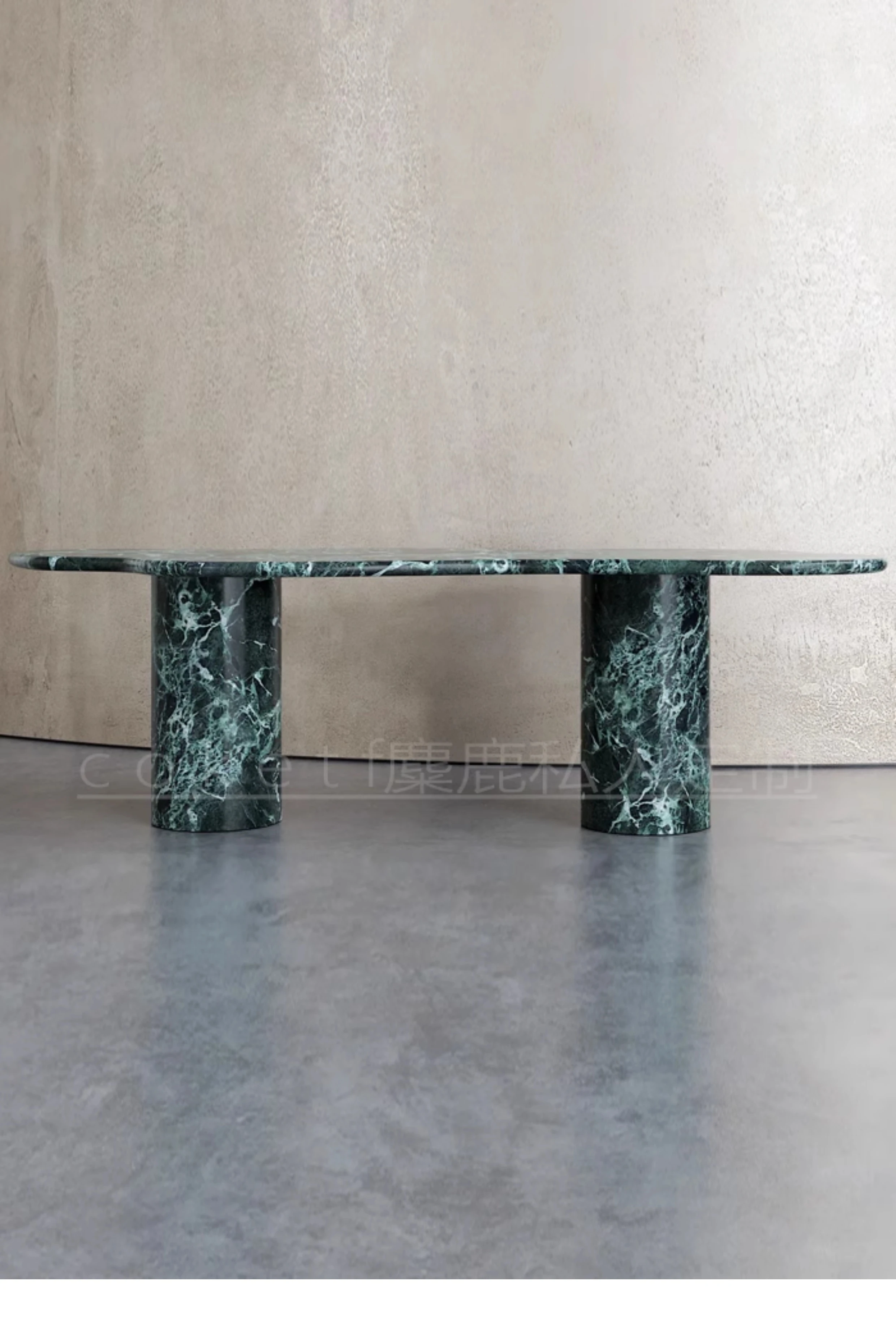 侘寂スタイルの創造的アート、天然大理石のユニークな形状のダイニングテーブル。デザイナーズの高級感あふれる別荘向けの大テーブルで、洗練された空間を演出します。