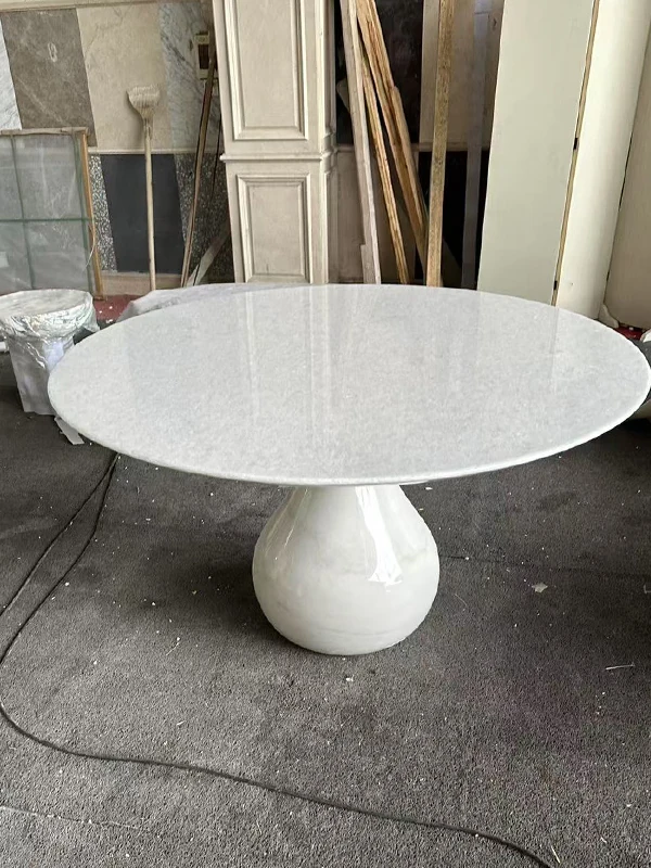 天然大理石製のモダンでシンプルなラグジュアリー感漂うデザイナーズラウンドダイニングテーブル - 別荘や広々としたリビングにぴったり!