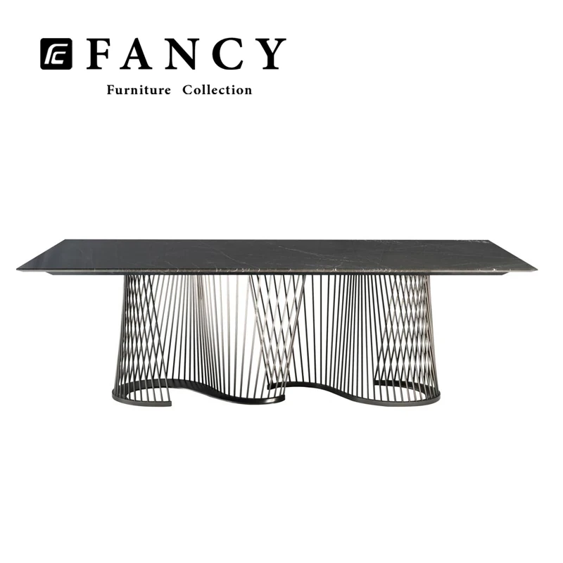 ラグジュアリーなイタリアンマーブルのダイニングテーブル&チェアセット|広々としたリビングにぴったり!6人掛けの楕円形ステンレス製テーブルで、家族や友人との特別なひとときを演出します。