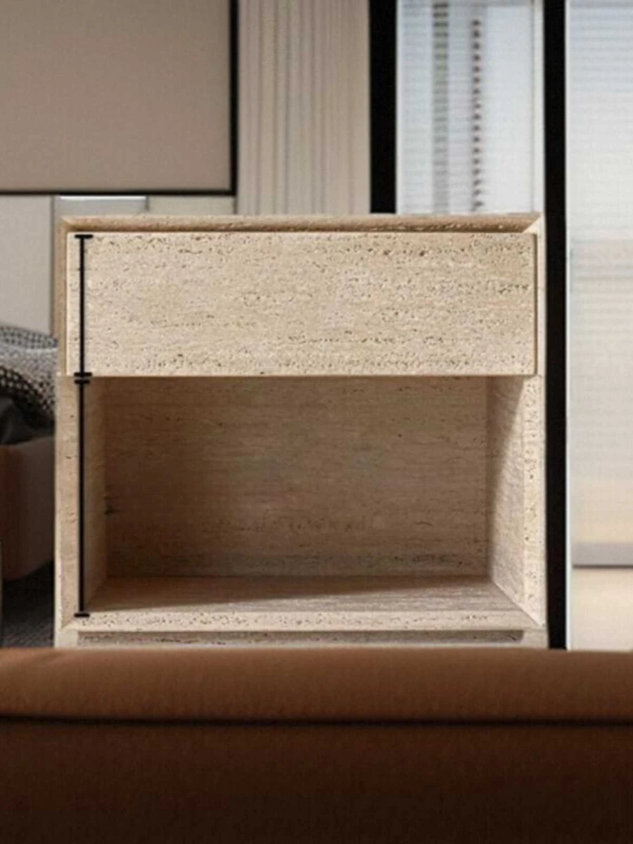 北欧風の天然洞石を使用した引き出し付きナイトテーブル|リビングにぴったりなクリエイティブアートソファサイドテーブル|寝室に最適な大理石コーナーテーブル