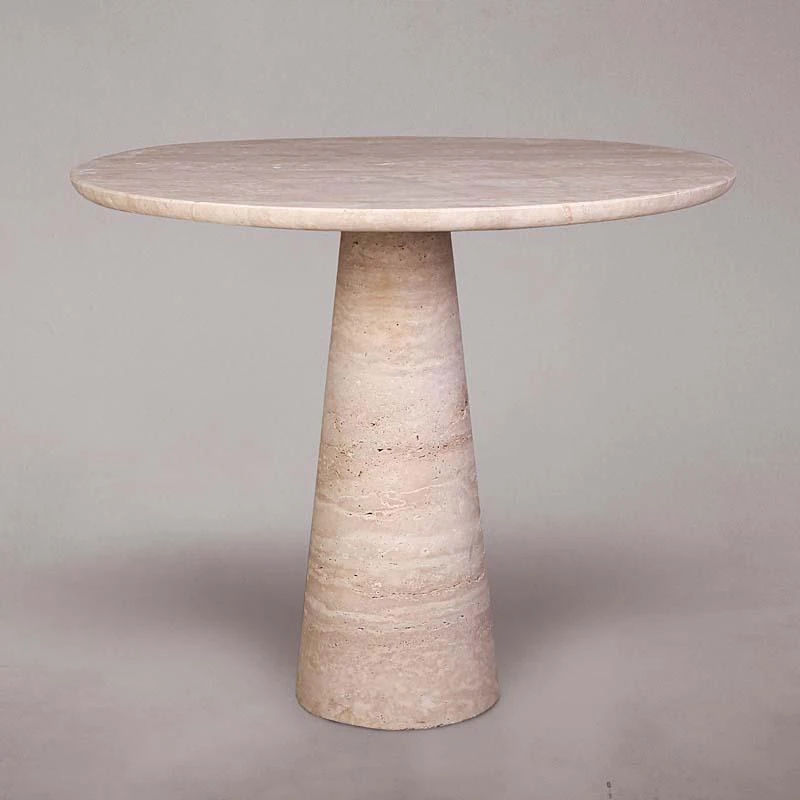 侘寂スタイルの北欧デザイン!天然大理石製の丸型ダイニングテーブル - 小スペースに最適なローマ洞石の美しさをお楽しみください。あなたの家に洗練された雰囲気をプラス!