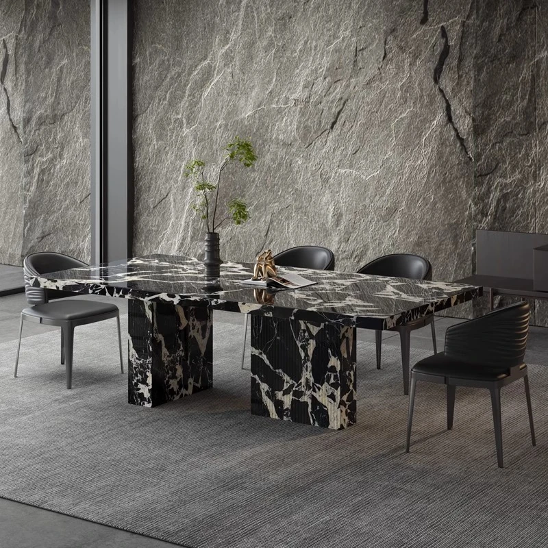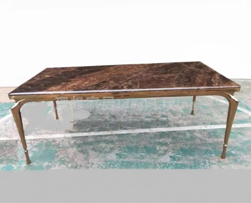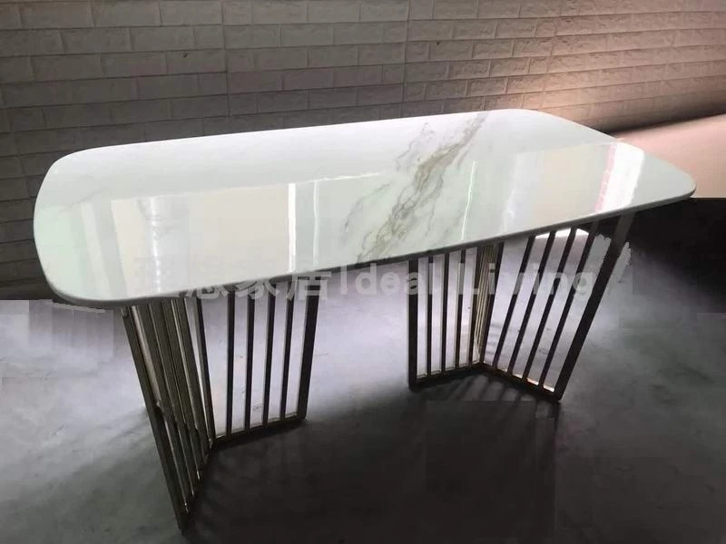北欧後現代デザインのステンレス製長テーブル、洗練された大理石のダイニングテーブル。シンプルでモダンな小型住宅に最適なスタイル!