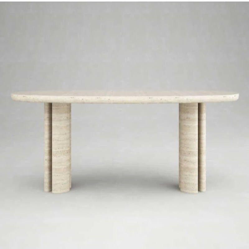 北欧スタイルのラグジュアリー天然洞石大理石ダイニングテーブル - モダンでシンプルなデザイン、別荘やホテルのリビングに最適な高級感あふれるダイニングテーブル!