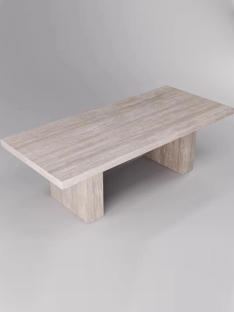 【大石】侘寂風の天然洞石大理石テーブル - モダンな別荘やサンプルルームにぴったりのロングダイニングテーブル。洗練されたデザインで、贅沢な食事体験を演出します。